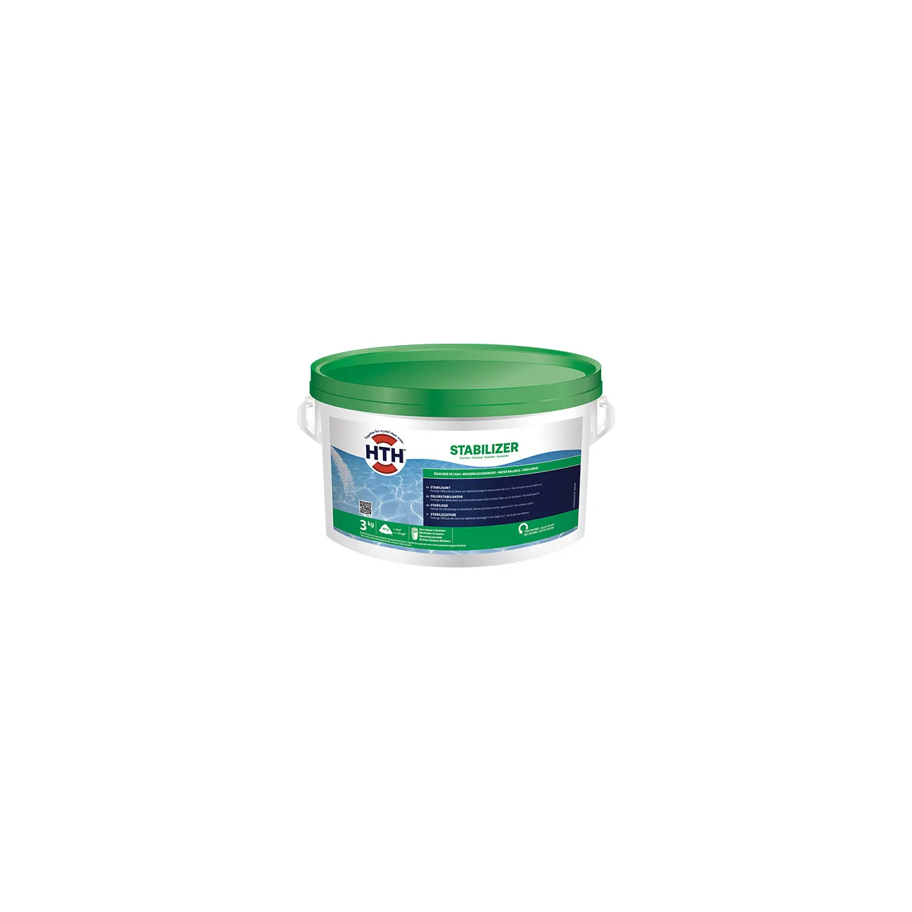 À utiliser en complément d'un traitement au chlore non stabilisé, le HTH® STABILIZER protège le chlore des rayons UV. En cas de traitement régulier au chlore stabilisé, l'usage de ce produit est inutile et même déconseillé.