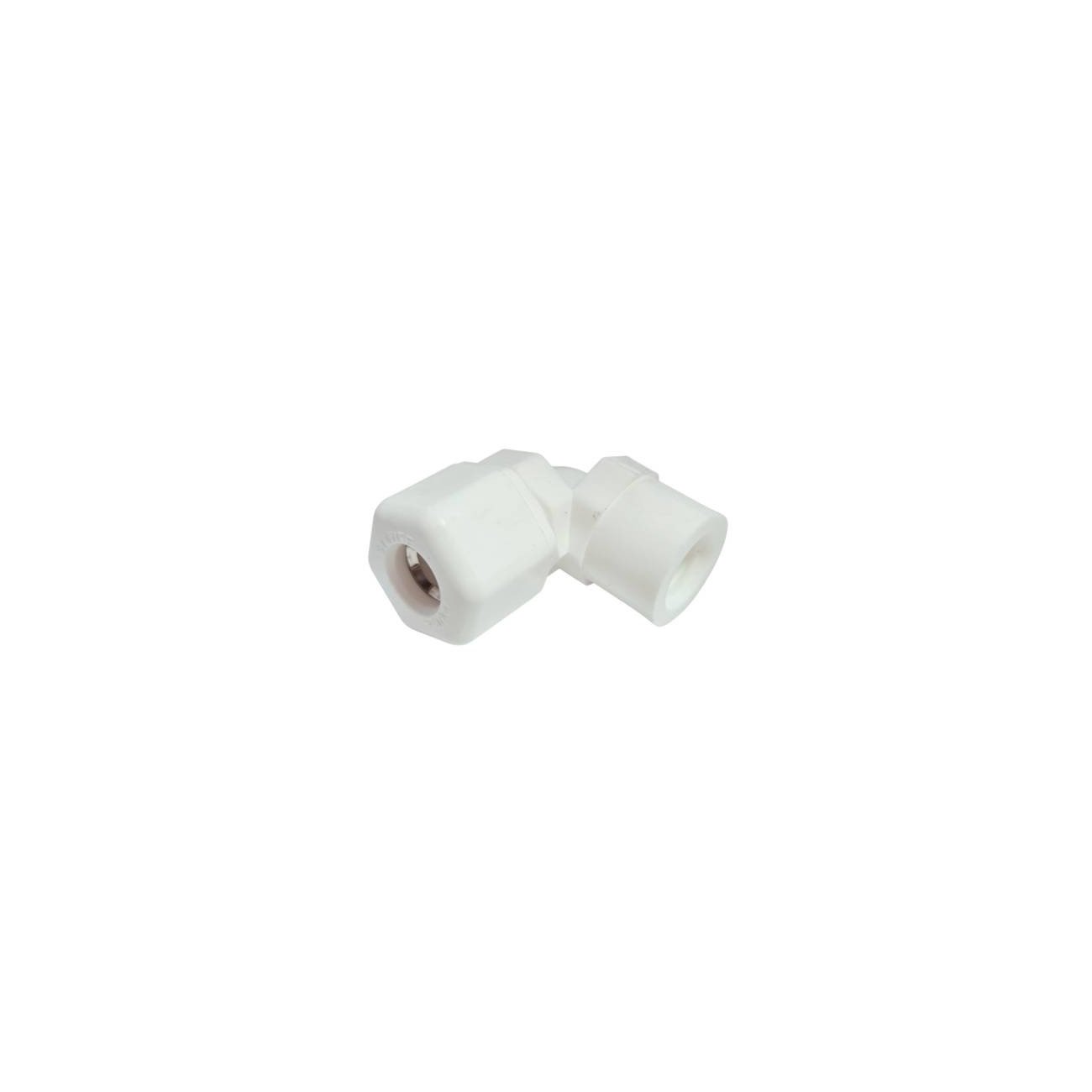 Le raccord coudé taraudé 1/4" – Ø 3/8" pour doseur Easiflo 1 permet de relier le bac de dissolution au tubing Ø 3/8".