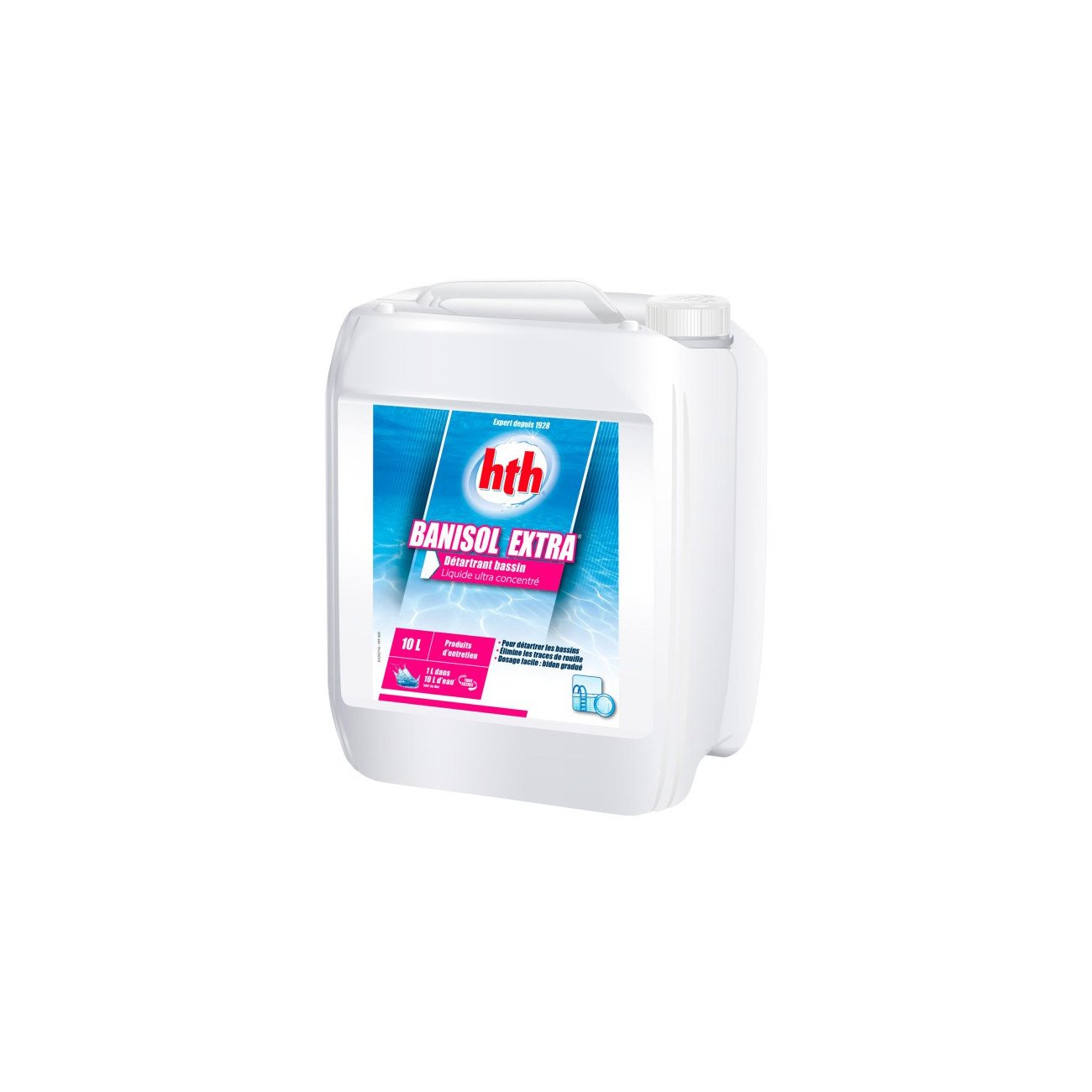 Ce produit d'entretien élimine tous les dépôts d'origine minérale, dans le cadre du nettoyage intensif ou périodique de votre piscine/plage.