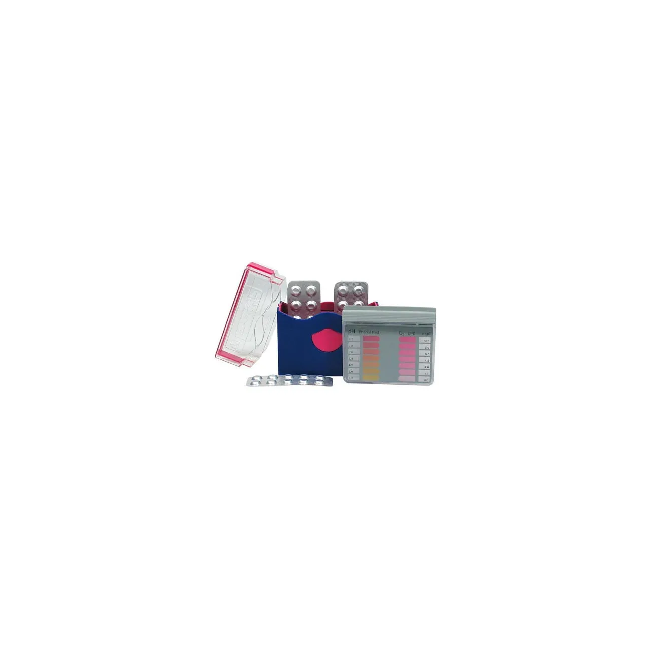 Ce produit est livré avec un boitier plastique, des pastilles réactifs pour 20 tests et le mode d'emploi.